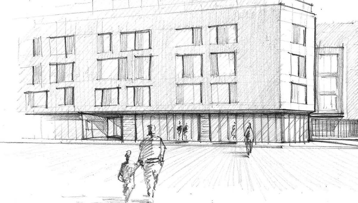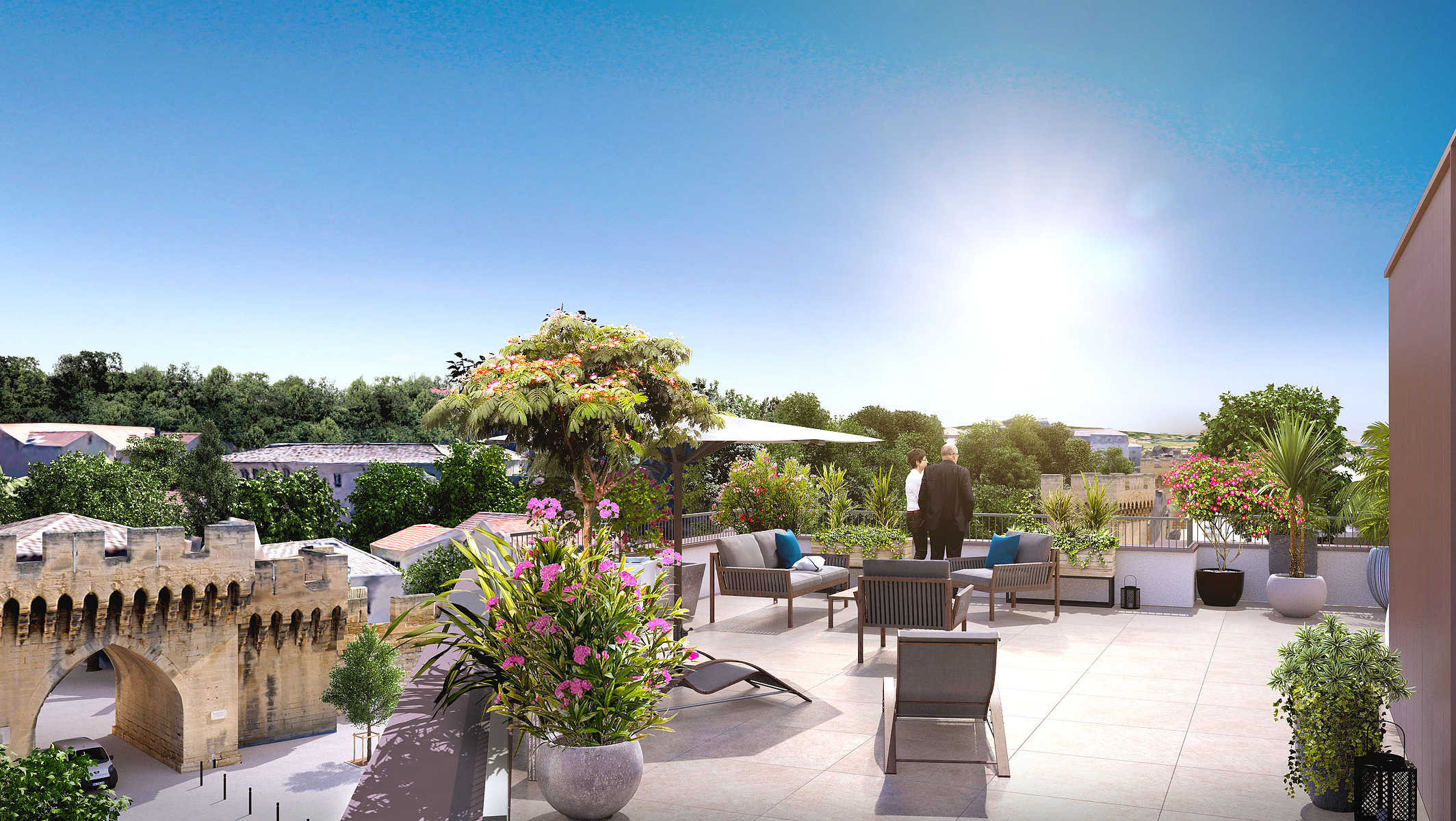 Le corps de bâtiment s’insère dans le tissu urbain existant composée à la fois de constructions récentes, de constructions des années 80 et des remparts historiques de la ville d’Avignon. Les ouvertures du R+3 jusqu’au rez-de-chaussée sont alignées afin que chaque ligne verticale soit perçue comme une seule « grande fenêtre », ouvrant la résidence sur les remparts.