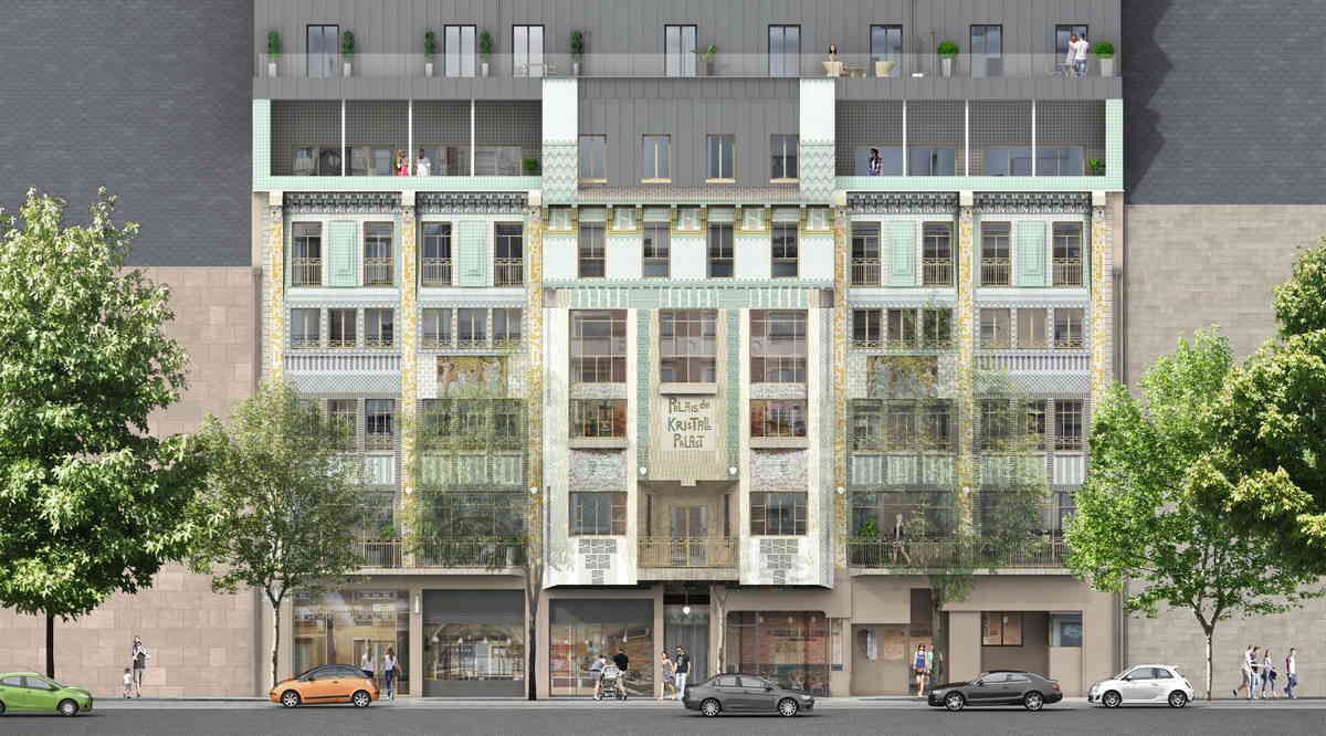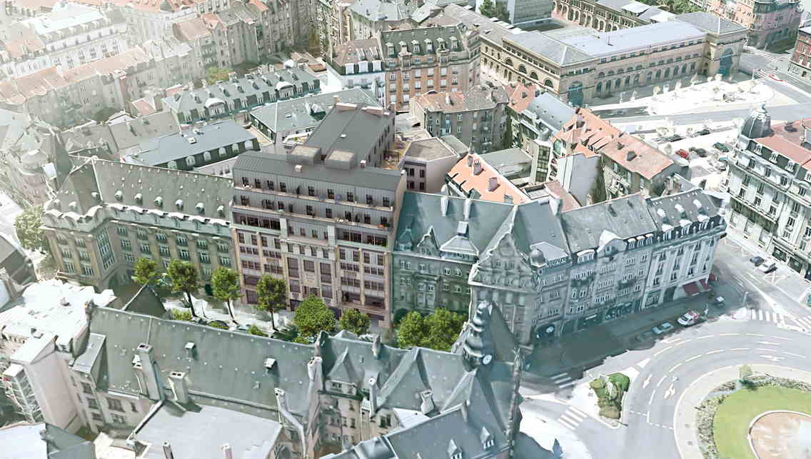 Le travail architectural a permis de réaliser une superbe résidence aux volumes exceptionnels. Mieux encore, un patient travail de recherche a permis de retrouver les plans et aquarelles représentant l’ancienne façade réouverte de carreaux de cristal et de décors d’inspiration art nouveau. Ce travail architectural permettra au bâtiment de retrouver ses couleurs d’antan.